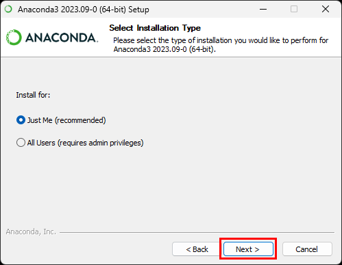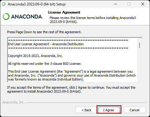 - 설치파일 : Anaconda3-2023.09-0-Windows-x86_64.exe