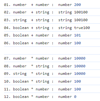 console.log("01. number + number : ", typeof (100 + 100), 100 + 100);