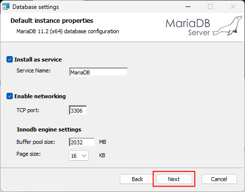 다운로드 받은 파일(mariadb-11.2.2-winx64.msi)을 실행하여 설치를 진행합니다.