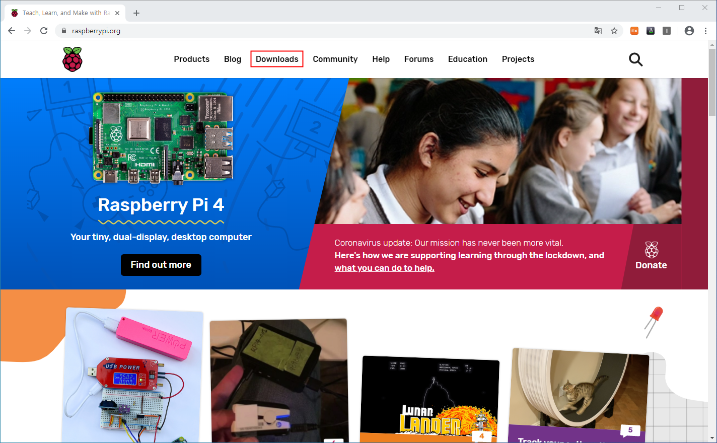 1. 라즈베리파이 (RaspberryPi) 홈페이지 접속
