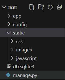 루트에 static 폴더를 만든후 그 아래 사용하고자 하는 용도에 따른 하위 폴더를 만들어 줍니다.