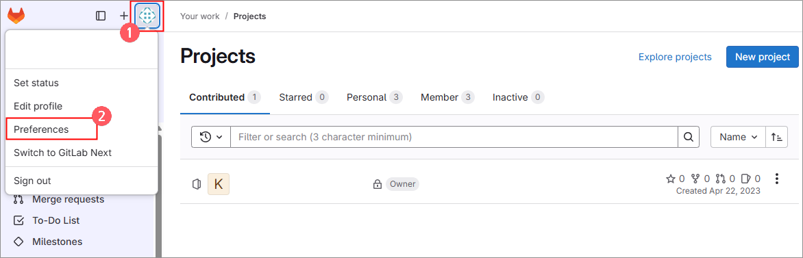 1) GitLab 접속후 Preferences 메뉴 선택