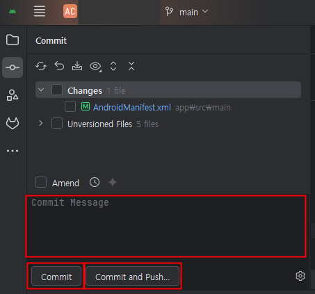 - 상황에 따라 [Commit] 또는 [Commit and Push...] 버튼을 클릭합니다.