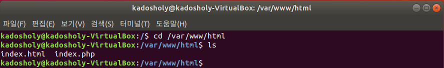 웹서버 루트 디렉토리로 이동하여 ($ cd /var/www/html)